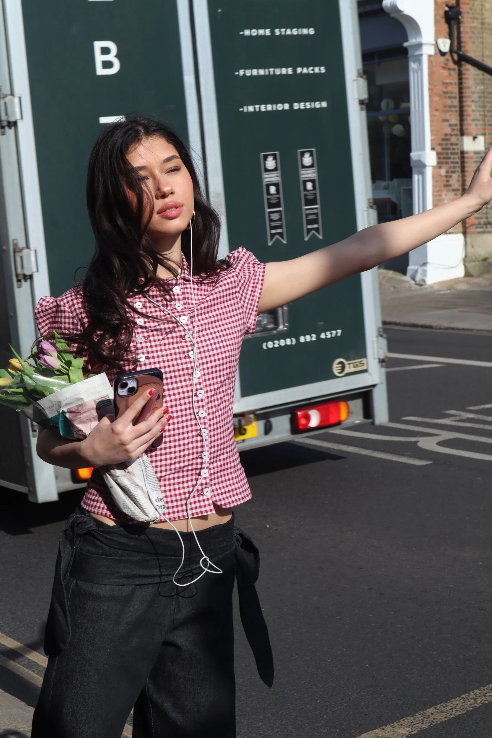 The Poet puff sleeve shirt is a perfect transitional piece made from dead stock check fabric and beautiful pearlescent buttons. The new puff sleeve version, a feminine take on our bestselling poet shirt. Inspired by one of my favourite poets Sylvia Plath.