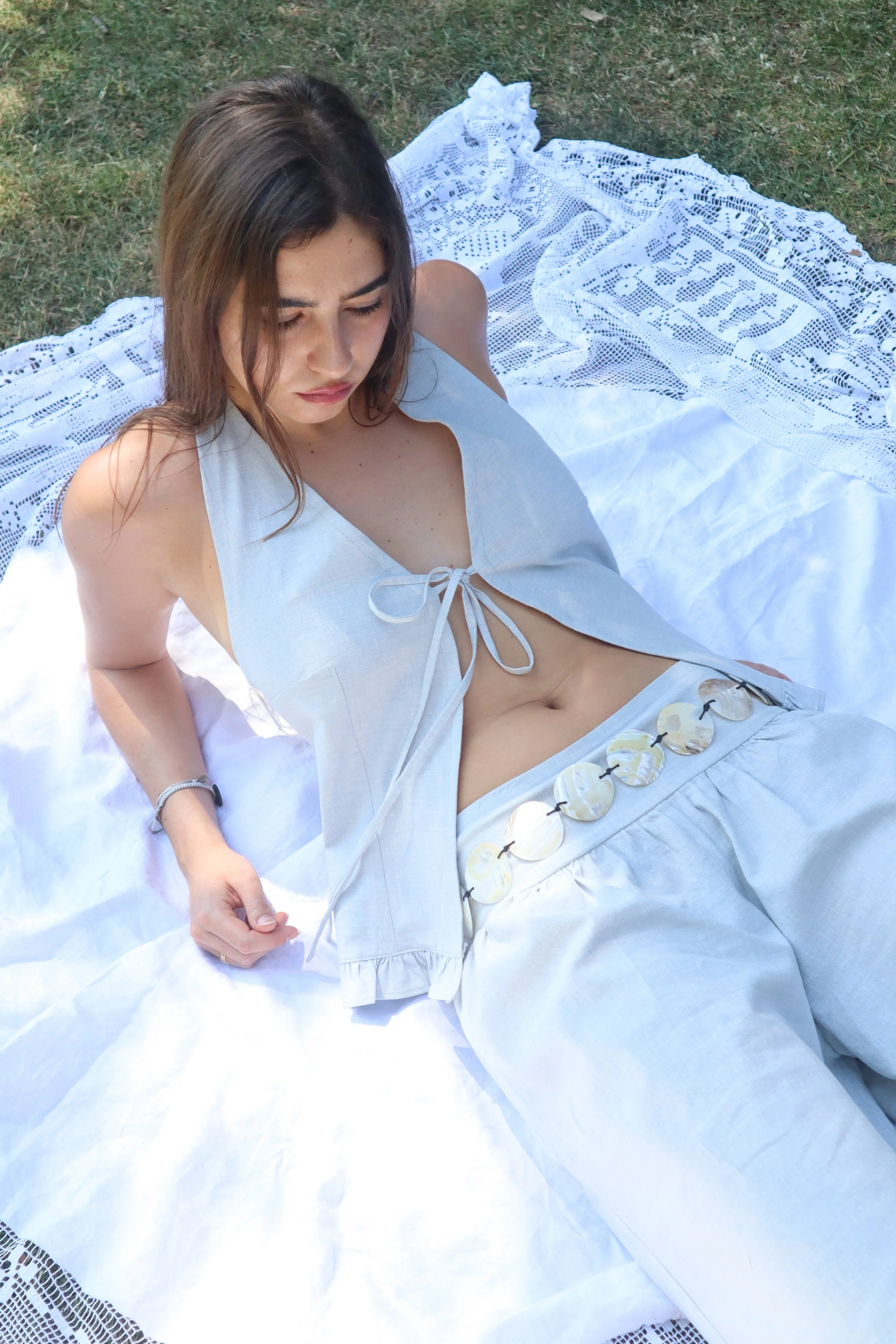 Comes in a linen, cotton, and viscose mix, in Grey and Cream.